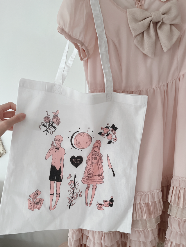 A tote bag with my original characters from Cénotaphe/paper airplanes